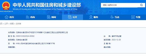 近日,住建部官網(wǎng)公布關(guān)于核準(zhǔn)2023年度第十二批建設(shè)工程企業(yè)資質(zhì)名單的公告,本批次共有4家建企晉升特級。