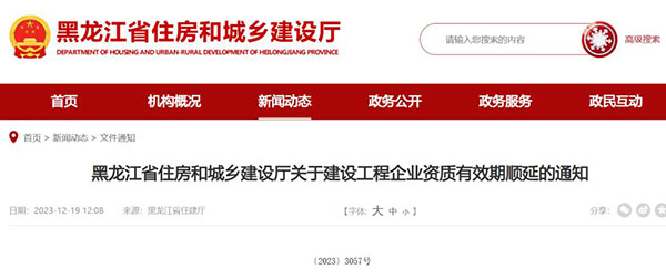 黑龍江省住房和城鄉(xiāng)建設(shè)廳關(guān)于建設(shè)工程企業(yè)資質(zhì)有效期順延的通知