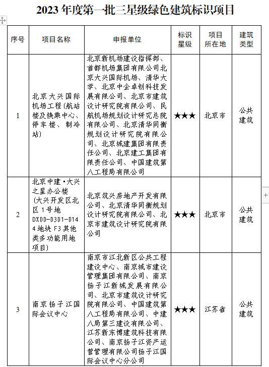 近日,住房城鄉(xiāng)建設(shè)部組織開展了2023年度第一批三星級綠色建筑標(biāo)識項目申報工作。經(jīng)項目單位申報、省級住房城鄉(xiāng)建設(shè)部門推薦、住房城鄉(xiāng)建設(shè)部組織專家評審并向社會公示,確定北京大興國際機場工程等8個項目獲得三星級綠色建筑標(biāo)識。