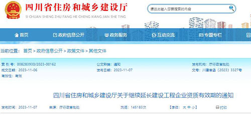 四川省住房和城鄉(xiāng)建設(shè)廳關(guān)于繼續(xù)延長(zhǎng)建設(shè)工程企業(yè)資質(zhì)有效期的通知
