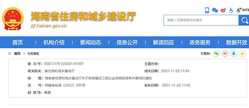 近日,海南省住建廳也發(fā)布了《關(guān)于建設(shè)工程企業(yè)資質(zhì)延續(xù)有關(guān)事項(xiàng)的通知》,企業(yè)資質(zhì)屆滿自動延續(xù)至2024年12月31日。